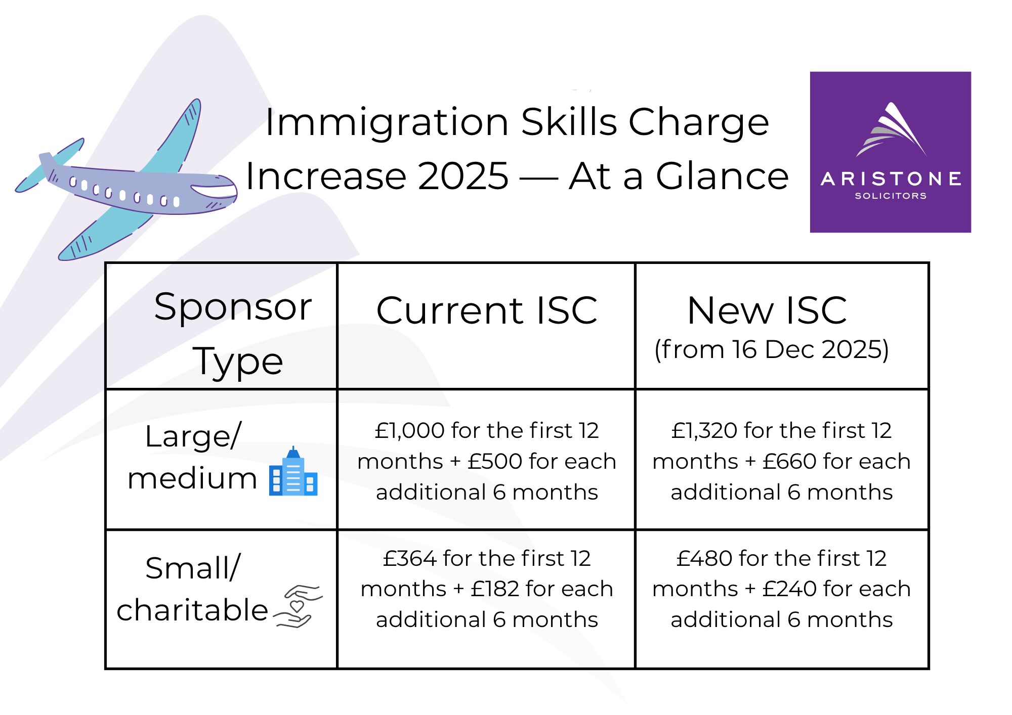 4 min readFrom 16 December 2025, the Immigration Skills Charge (ISC) will rise by approximately 32%. This increase will significantly raise the overall cost of sponsoring overseas workers under the Skilled Worker route. Why is the Immigration Skills Charge increasing? The Immigration Skills Charge (ISC) was introduced to encourage UK employers to invest in and train the … Read more